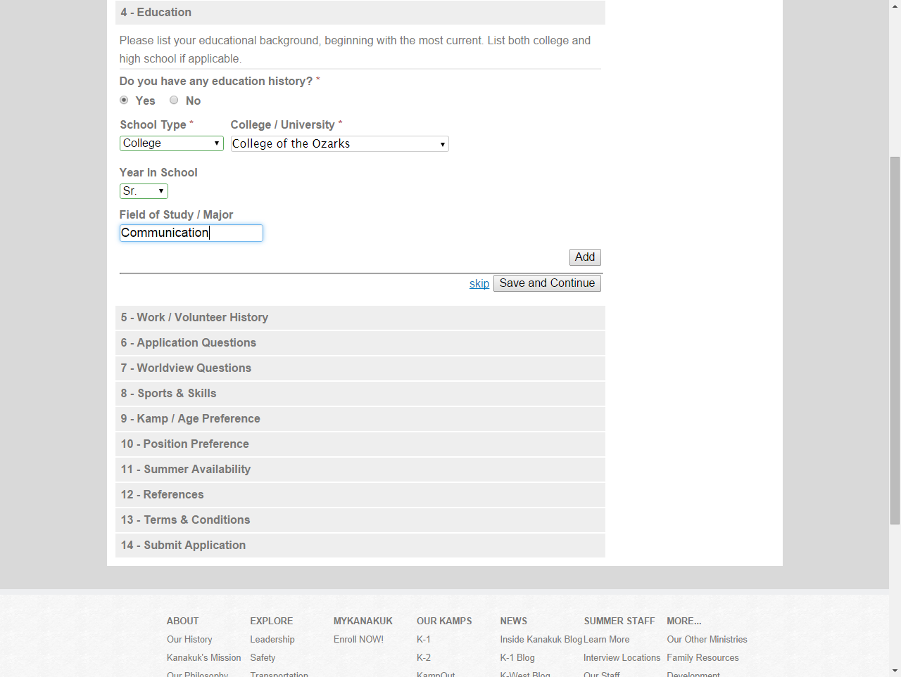 - After entering a unique e-mail and completing all new account information, your account is open and you will be free to register a camper, update a registration, make payments, etc.