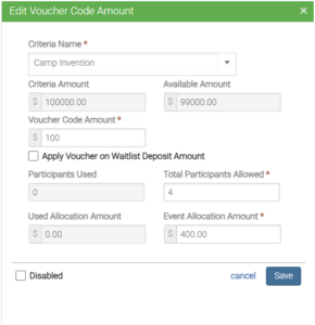 - Determine which scholarship funds will be allocated to Voucher Codes