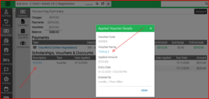 - Apply voucher codes from the Accounting tab within the Registration section